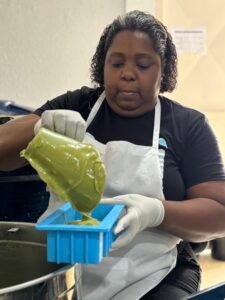 Dani, como é conhecida, atualmente trabalha fabricando mais de 40 formas de sabão por dia ao lado de uma equipe que já conta com 13 mulheres, muitas delas mães que não tiveram a oportunidade de ter acesso ao mercado de trabalho formal.